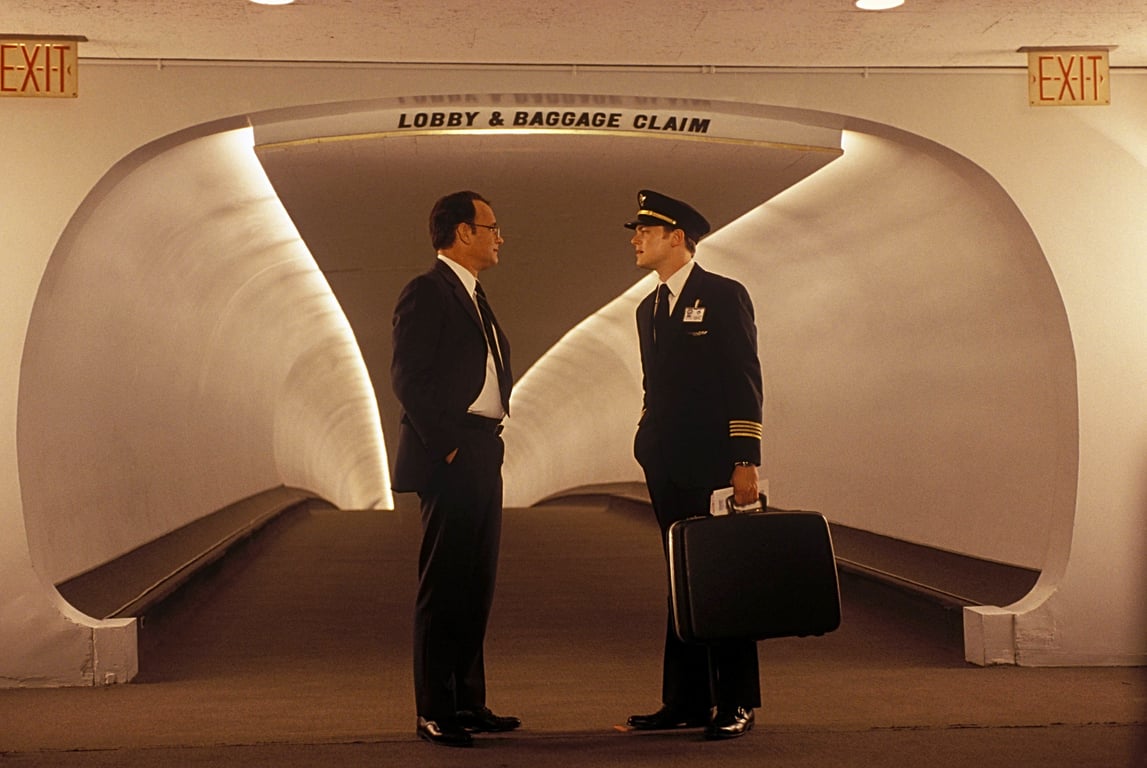 The story begins in 1963 and follows Frank Abagnale Jr. (played by Leonardo DiCaprio), a teenager living with his parents in New Rochelle, New York. The young man’s hero is his father (an Academy Award nomination for Christopher Walken) who is no stranger to conning people, with Frank Jr. sometimes serving as his accomplice. Dreaming of power and money, Frank Sr. lives an unaffordable lifestyle which eventually catches up with him, resulting in the family losing their big house and moving into a much smaller apartment in the wake of an I.R.S. investigation. After a while, Frank Jr. finds out that his parents, whose romantic love story he could never hear enough of, are getting a divorce. When forced to decide which parent he is going to live with, the sixteen-year-old chooses neither and runs away instead. Having learned a thing or two from his small-time con man of a father, Frank manages to get his hands on a Pan Am pilot’s uniform, which enables him to not only fly across the country for free as a passenger, but also to make substantial amounts of money by forging the company’s payroll checks—and by substantial I mean millions of dollars. Agent Carl Hanratty (portrayed by Tom Hanks) of the FBI is on to him, but Frank Jr. always manages to elude capture by settling into a new persona using his unique set of skills. Be that as it may, Hanratty, himself a man with a family life in shambles, is relentless in his pursuit and Frank is still but a child, running away from the shattered pieces of a broken home, slowly but surely drowning in the loneliness of his chosen lifestyle. He cannot run forever. And no matter how hard he tries, he cannot outrun himself or the reality of his family situation which he tries so desperately to escape.