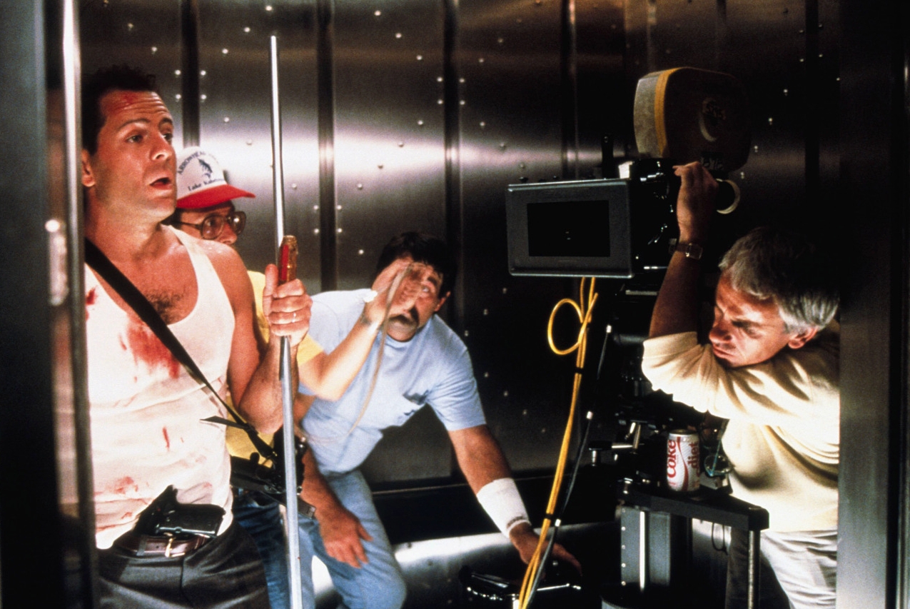 Here are several photos taken behind-the-scenes during production of John McTiernan’s Die Hard. Photographed by Robert Isenberg, Virgil Mirano & Peter Sorel © Twentieth Century Fox Film Corporation, Gordon Company, Silver Pictures. Intended for editorial use only. All material for educational and noncommercial purposes only.