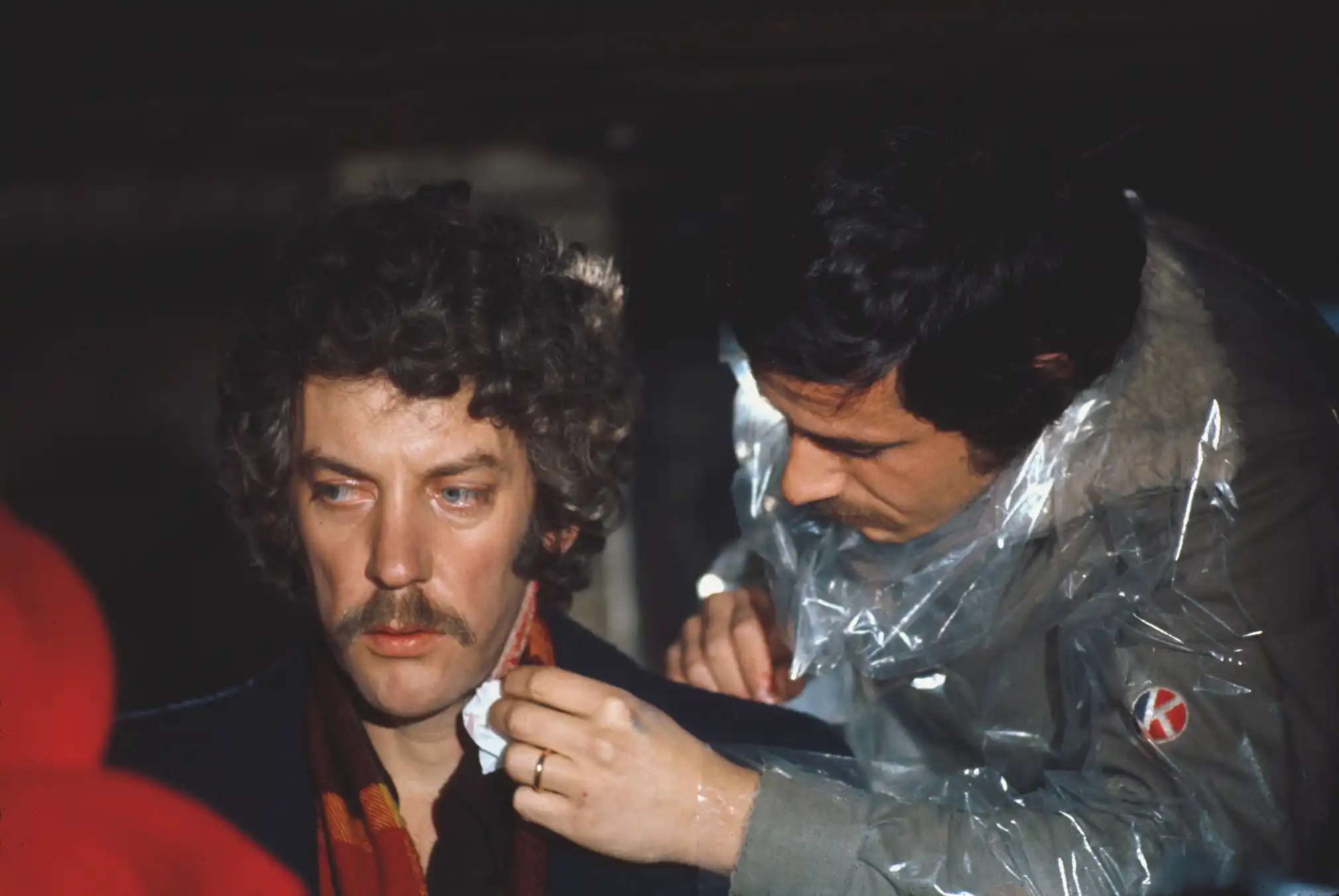 “The biggest drama of the shot was Donald with the death sequence. It was scheduled to be done on the last day and that panicked him. He didn’t want to do it on the last day and he got a bit nervous about it. We rehearsed it using a prosthetic piece but—and I don’t know if I should upset vegetarians—we got a baby pig from a butcher and put Donald’s wig and scarf around it because pig’s skin is like human skin obviously. Then we sent it to Harry’s Bar and they cooked it for us” (laughs).