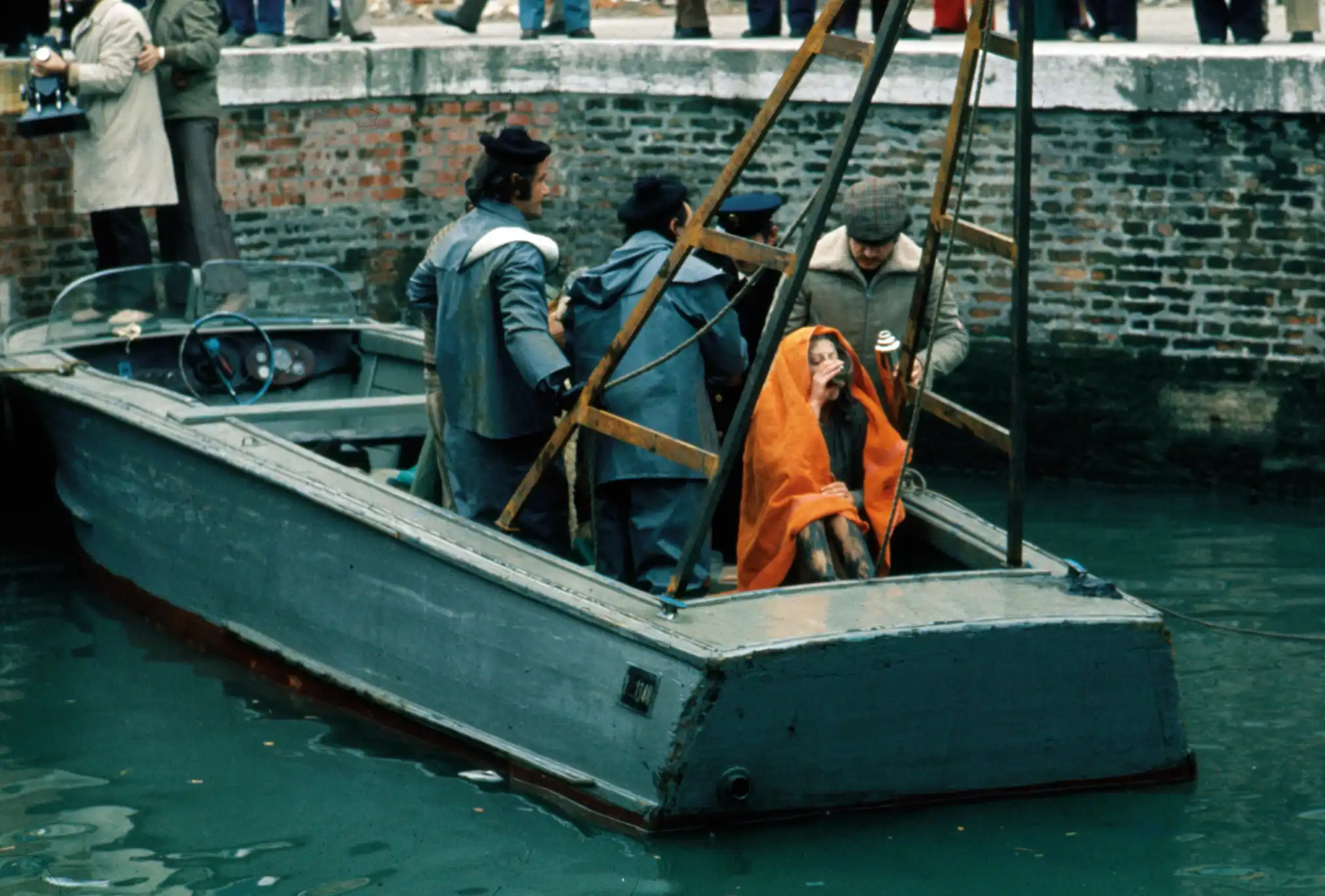 Here are several photos taken behind-the-scenes during production of Nicolas Roeg’s Don’t Look Now. Photographed by David Steen, Peter Cassell, Frank Connor, Pierluigi Praturlon © Studiocanal, Casey Productions, Eldorado Films, D.L.N. Ventures Partnership. Intended for editorial use only. All material for educational and noncommercial purposes only. Don’t Look Now and Then by Justin John Doherty is published on 9 October and is available at DontLookNowBook.com