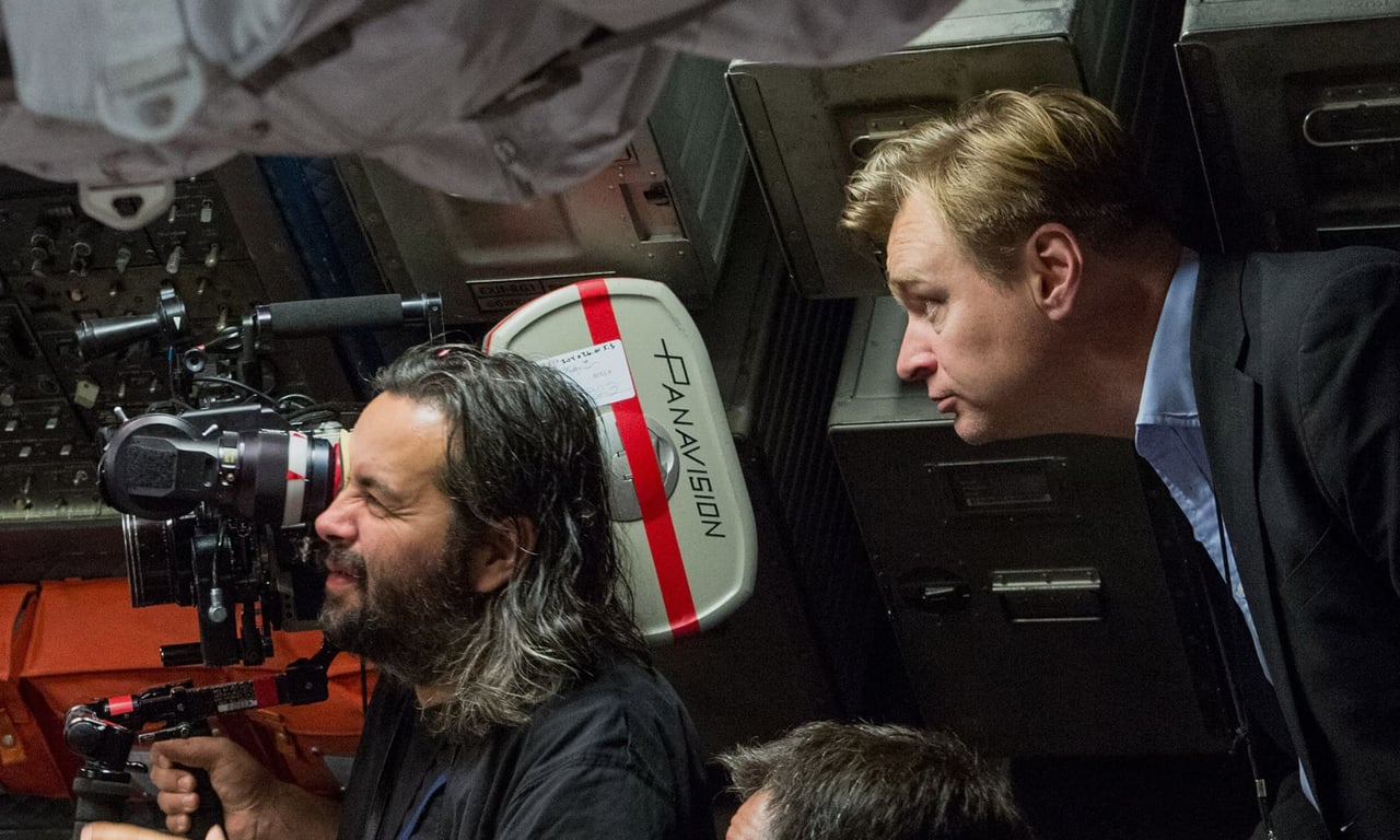 Nolan describes it as being “a little bit like old, on-axis front projection”, such as that used by Stanley Kubrick and Douglas Trumbull for 2001: A Space Odyssey or by Richard Donner in Superman. His genial DP, Van Hoytema (the cinematographer of Let The Right One In and Her is the first Nolan has worked with since Wally Pfister transcended to directing), describes what they’re doing as “reinstating that technique with modern technology. For Chris and I it became some sort of an epiphany. Projectors now are much more powerful so you can project content that actually illuminates [the sets].” Van Hoytema retooled an IMAX camera so he could carry it around the interiors handheld (“It’s a little heavy but it’s not that bad”). “Basically you’re on a set and outside you have a reality that you totally believe in”—one which also, handily, provided clear reflections on the actors’ visors.