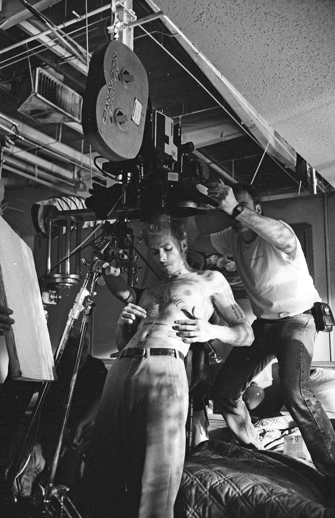 Here are several photos taken behind-the-scenes during production of Christopher Nolan’s Memento. Photographed by Daniel Rothenberg © Newmarket Capital Group, Team Todd, Summit Entertainment (Kobal/REX/Shutterstock). Intended for editorial use only. All material for educational and noncommercial purposes only. Please visit the website and support: The Society of Motion Picture Still Photographers.