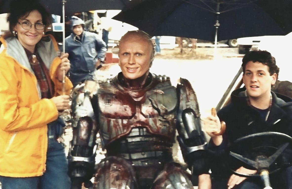 Bobbie Wygant interviews Peter Weller on the set of Robocop.
