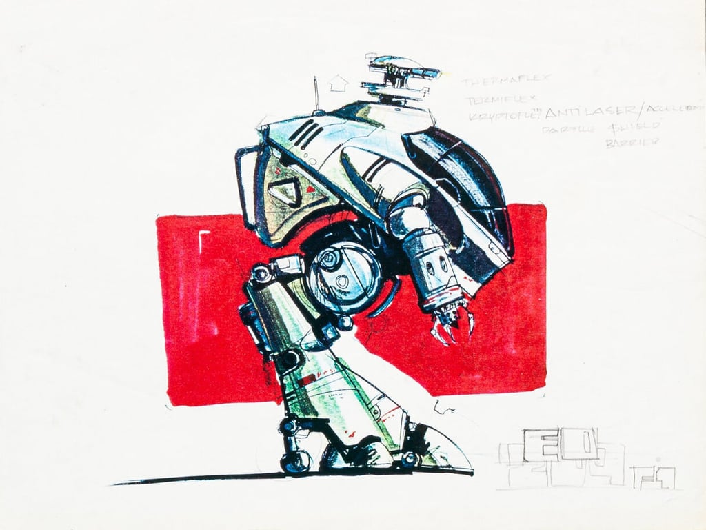 Craig Davies was the actual designer of the droid. Verhoeven wanted something specifically non-anthropomorphic, “with the precision of a lathe and the physical force of a Mack truck (Tippett).”