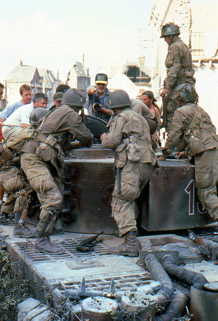 That was a very complicated sequence which took weeks and weeks to plan out on paper. We didn’t storyboard it, but we wrote it all out. Dale Dye got involved, and he really screwed my head on straight by reminding me not to let the audience down after giving them such a visceral experience in the Omaha Beach scenes. We had to properly bookend the picture, and this time more emotionally. Dale helped me a great deal by showing me the firepower of the weapons that the Germans were using, or what the effect of an artillery round would look like on the ground—and not by Hollywood standards, which is usually larger than reality. Every time I wanted a large fireball or explosion, Dale would ask me what round was fired to create that effect, and he would invariably say, “Go half that size; they were never that big.” He was a really good person to have around because he was able to scale the reality down to what he was accustomed to in Vietnam—just as the World War II veterans we talked to or had on the set could tell us what they were accustomed to.