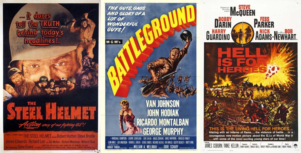 In terms of features, the World War II pictures that inspired me the most were William Wellman’s Battleground [1949], Sam Fuller’s The Steel Helmet [1951], and Don Siegel’s Hell Is for Heroes [1962]. I didn’t really draw from those films aesthetically, but they made a big impression on me while I was growing up in Arizona and watching a lot of TV. I haven’t studied World War II films, but I’m very familiar with them because they were a part of my formative years.