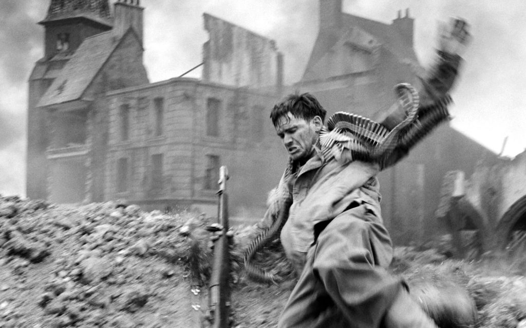 In truth, on Private Ryan I tried to take the opposite approach of nearly every one of my favorite World War II movies. Films that were made during the actual war years never really concerned themselves with realism, but more with extolling the virtues of winning and sacrificing ourselves upon the altar of freedom. Those were the themes of many World War II pictures, which also were designed to help sell war bonds. I love those movies, but I think Vietnam pushed people from my generation to tell the truth about war without glorifying it. As a result, I’ve taken a much harder approach to telling this particular story. From a visual perspective, I was much more influenced by various World War II documentaries—Memphis Belle, Why We Fight, John Ford’s Midway movie, and John Huston’s film on the liberation of the Nazi death camps—than I was by any of Hollywood’s representations of the war. I was also very inspired by [photographer] Robert Capa’s documentary work and the eight surviving stills he took during the assault on Omaha Beach.